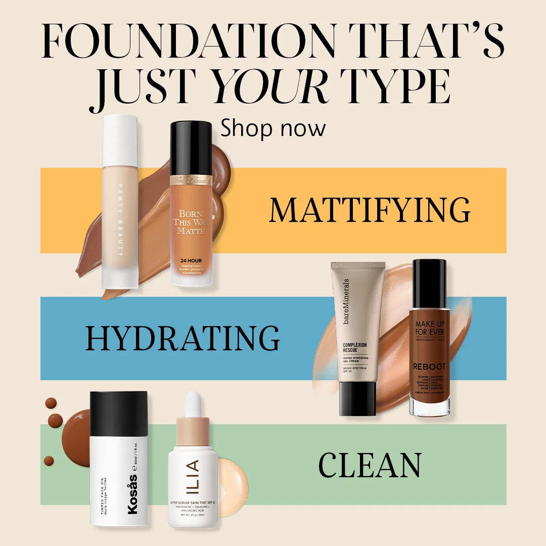 Foundation digital campaign featuring curated foundation products at Sephora. Ask was to drive product sales and site traffic as well as delineate 3 different categories for foundation: mattifying, hydrating and clean. Challenge was only using sku imagery and illustrated graphics to create designed assets. Creative concept demonstrated ease of use by illustrating a metaphorical “foundation finder” through motion in paid social, organic social and email assets. Pops of color were incorporated to visually delineate categories as well as evoke a fun and lively tone.